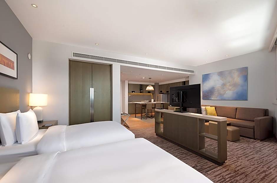 A variety of room configurations are offered, from Standard and Studio to Suites. Some suites feature a king-sized bed or twin beds, plus a sofa bed, and certain layouts include a kitchen, ideal for longer stays or traveling with family.